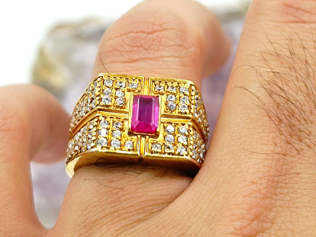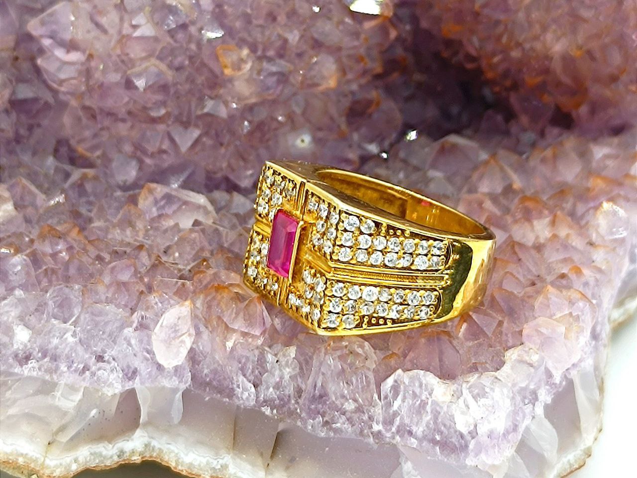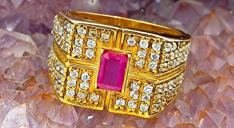 انگشتر یاقوت سرخ برمه آفریقایی با آبکاری طلایی
