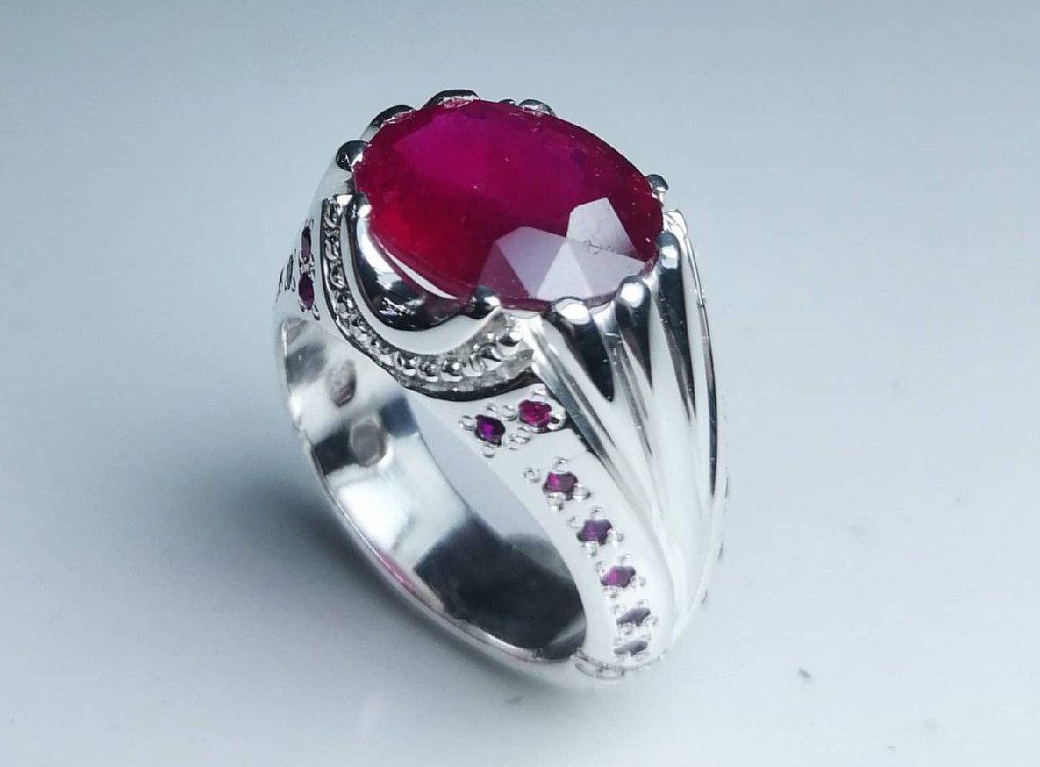انگشتر یاقوت سرخ طبیعی مردانه تمام دست ساز کد ۱۱۸۷۰